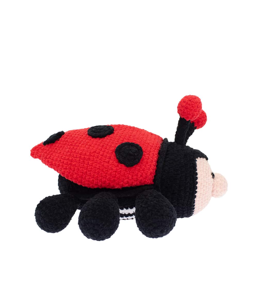 Ladybug Loïs is crocheted with Scheepjes Little Darling and a crochet hook number 3,5 and is about 26 centimeters long and 10 centimeters high.